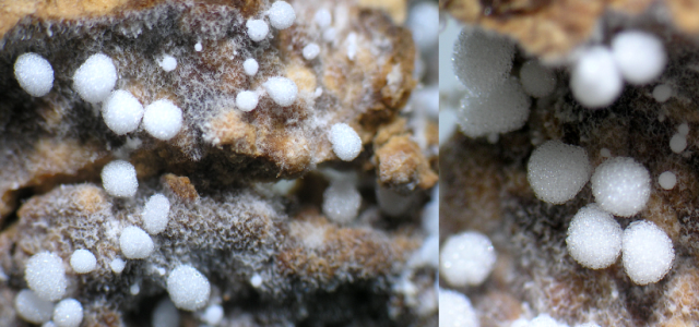 雞樅菌的菌絲體在白蟻巢體基質內部大量生長,分解各種有機物形成大量的菌絲體,然后在薄壁的巢體表面大量產生小白球狀的菌絲體,小白球的直徑長200微米至800微米,白蟻喜歡吃這些營養(yǎng)豐富的小白球,繁殖壯大成一個有數百萬居民的大群體。從白蟻的腸道中可以分離純化得到雞樅菌的純菌種。